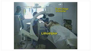 This is a simple non invasive technique by which stone is powdered inside the kidney. Our modern machine does not require general anesthesia as it produces, very little pain. Hence this is an outpatient procedure, not requiring admission.
